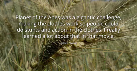 Atwood, Colleen. (2026, January 17). Planet of the Apes was a gigantic challenge, making the clothes work so people could do stunts and action in the clothes. I really learned a lot about that in that movie. FixQuotes. https://fixquotes.com/quotes/planet-of-the-apes-was-a-gigantic-challenge-47012/
