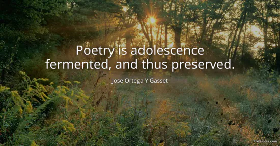Gasset, Jose Ortega Y. "Poetry is adolescence fermented, and thus preserved." FixQuotes. January 15, 2026. https://fixquotes.com/quotes/poetry-is-adolescence-fermented-and-thus-preserved-144232/.