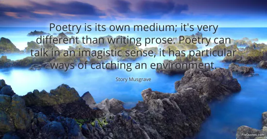 Musgrave, Story. "Poetry is its own medium; it's very different than writing prose. Poetry can talk in an imagistic sense, it has particular ways of catching an environment." FixQuotes. January 15, 2026. https://fixquotes.com/quotes/poetry-is-its-own-medium-its-very-different-than-151476/.