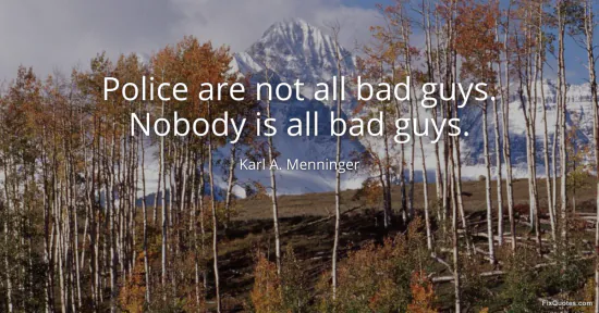 Menninger, Karl A. (2026, January 17). Police are not all bad guys. Nobody is all bad guys. FixQuotes. https://fixquotes.com/quotes/police-are-not-all-bad-guys-nobody-is-all-bad-guys-76323/