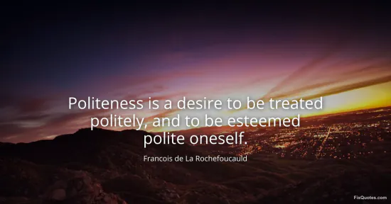 Rochefoucauld, Francois de La. (2026, January 17). Politeness is a desire to be treated politely, and to be esteemed polite oneself. FixQuotes. https://fixquotes.com/quotes/politeness-is-a-desire-to-be-treated-politely-and-35977/