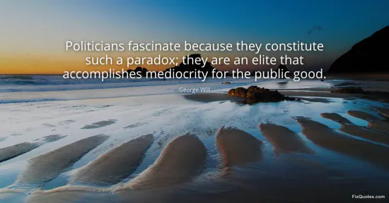 Will, George. (2026, January 17). Politicians fascinate because they constitute such a paradox; they are an elite that accomplishes mediocrity for the public good. FixQuotes. https://fixquotes.com/quotes/politicians-fascinate-because-they-constitute-61533/