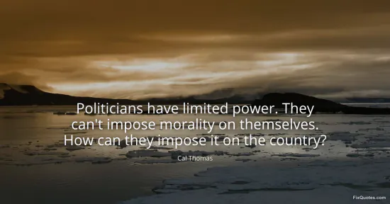 Thomas, Cal. (2026, January 17). Politicians have limited power. They can't impose morality on themselves. How can they impose it on the country? FixQuotes. https://fixquotes.com/quotes/politicians-have-limited-power-they-cant-impose-46298/