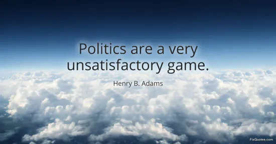 Adams, Henry B. (2026, January 17). Politics are a very unsatisfactory game. FixQuotes. https://fixquotes.com/quotes/politics-are-a-very-unsatisfactory-game-55030/