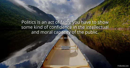 McGovern, George. (2026, January 16). Politics is an act of faith; you have to show some kind of confidence in the intellectual and moral capacity of the public. FixQuotes. https://fixquotes.com/quotes/politics-is-an-act-of-faith-you-have-to-show-some-130939/