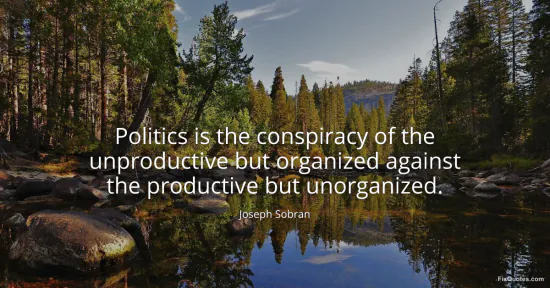 Sobran, Joseph. "Politics is the conspiracy of the unproductive but organized against the productive but unorganized." FixQuotes. January 14, 2026. https://fixquotes.com/quotes/politics-is-the-conspiracy-of-the-unproductive-68590/.