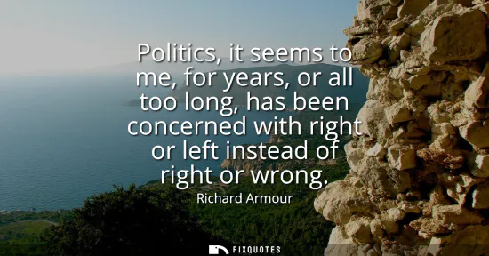"Politics, it seems to me, for years, or all too long, has been concerned with right or left instead of right or wrong"