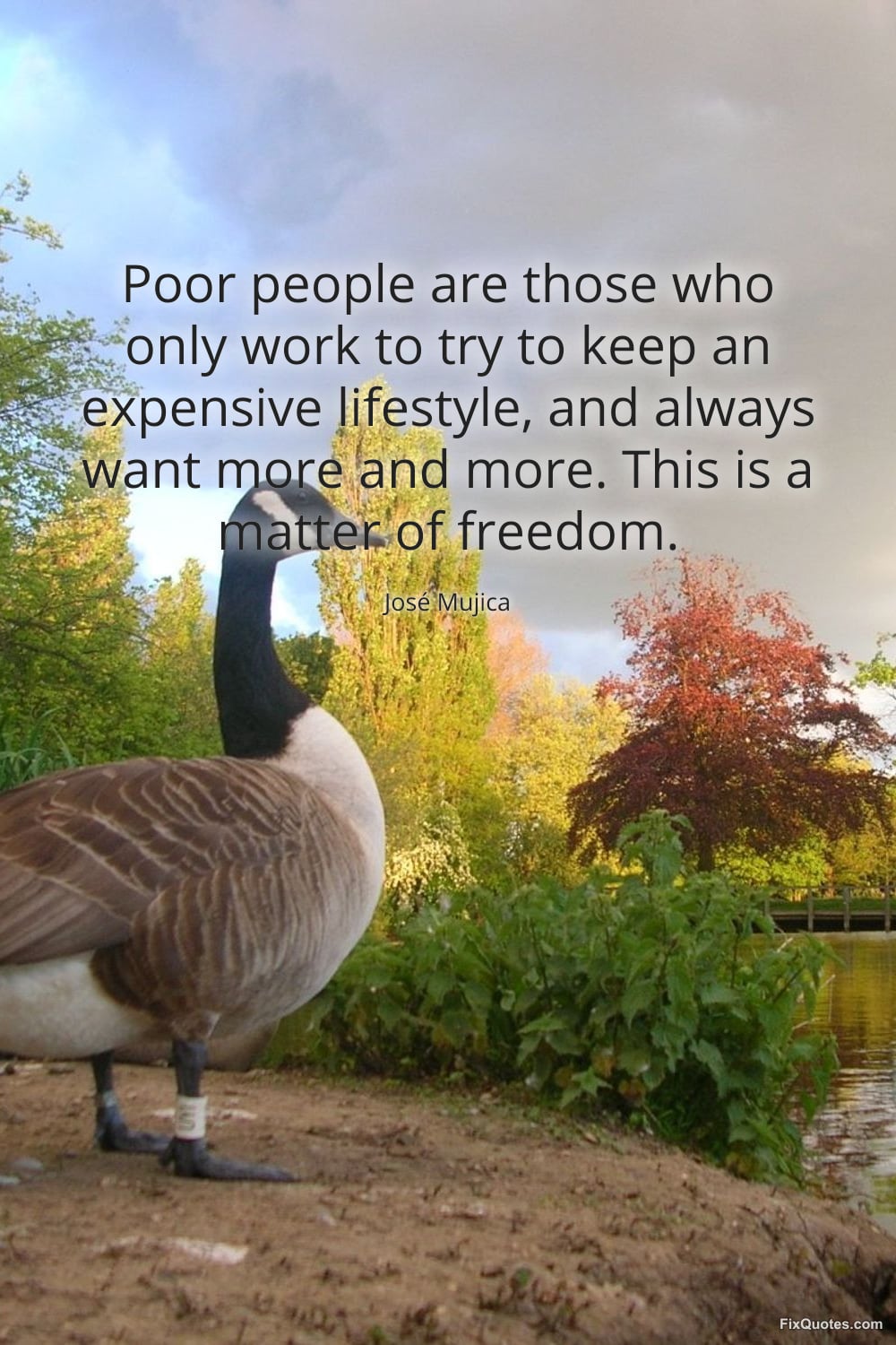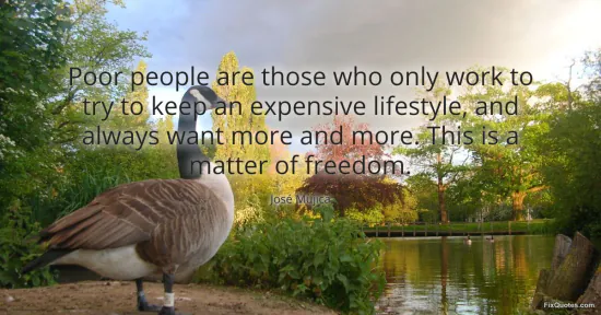 Mujica, José. (2026, March 7). Poor people are those who only work to try to keep an expensive lifestyle, and always want more and more. This is a matter of freedom. FixQuotes. https://fixquotes.com/quotes/poor-people-are-those-who-only-work-to-try-to-185692/