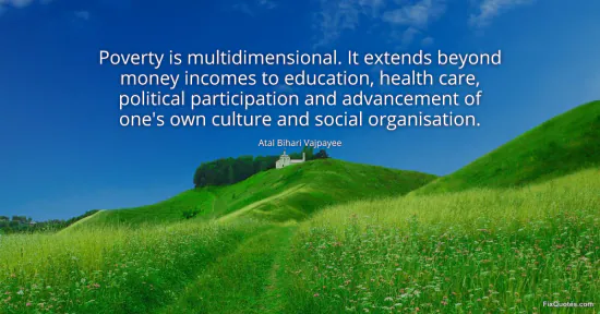 Vajpayee, Atal Bihari. (2026, January 17). Poverty is multidimensional. It extends beyond money incomes to education, health care, political participation and advancement of one's own culture and social organisation. FixQuotes. https://fixquotes.com/quotes/poverty-is-multidimensional-it-extends-beyond-44203/