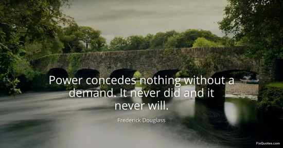Douglass, Frederick. "Power concedes nothing without a demand. It never did and it never will." FixQuotes. January 18, 2026. https://fixquotes.com/quotes/power-concedes-nothing-without-a-demand-it-never-16610/.