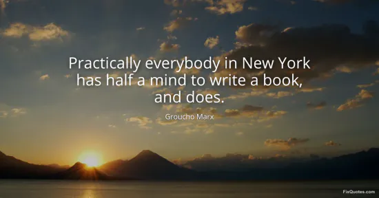 Marx, Groucho. "Practically everybody in New York has half a mind to write a book, and does." FixQuotes. January 15, 2026. https://fixquotes.com/quotes/practically-everybody-in-new-york-has-half-a-mind-137503/.