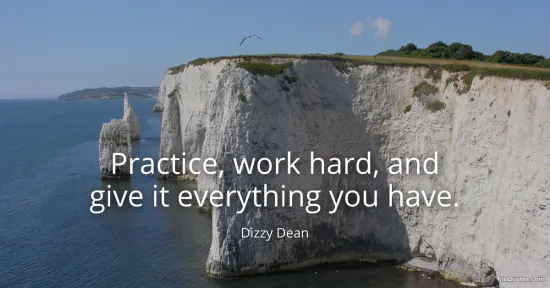 No mysticism, no shortcuts, no tortured genius narrative: just the blunt toolkit of an athlete who understood that talent is only the down payment. Dizzy Dean’s “Practice, work hard, and give it everything you have” lands like clubhouse advice, but its real force is how aggressively it refuses romance. It’s a three-step command sequence that moves from process (“Practice”), to sustained discipline (“work hard”), to total commitment under pressure (“give it everything you have”). The progression is the point: repetition builds skill, effort builds durability, and intensity is what shows up when the stakes spike.