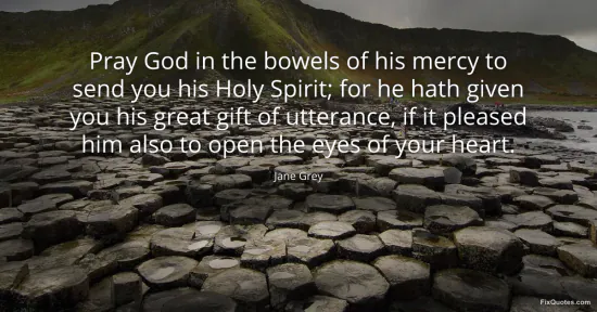 Grey, Jane. (2026, January 18). Pray God in the bowels of his mercy to send you his Holy Spirit; for he hath given you his great gift of utterance, if it pleased him also to open the eyes of your heart. FixQuotes. https://fixquotes.com/quotes/pray-god-in-the-bowels-of-his-mercy-to-send-you-9538/