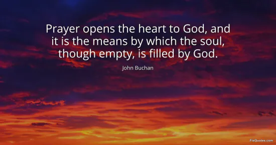 Buchan, John. "Prayer opens the heart to God, and it is the means by which the soul, though empty, is filled by God." FixQuotes. January 16, 2026. https://fixquotes.com/quotes/prayer-opens-the-heart-to-god-and-it-is-the-means-126291/.