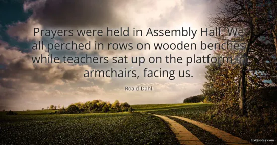 Dahl, Roald. "Prayers were held in Assembly Hall. We all perched in rows on wooden benches while teachers sat up on the platform in armchairs, facing us." FixQuotes. January 15, 2026. https://fixquotes.com/quotes/prayers-were-held-in-assembly-hall-we-all-perched-147906/.