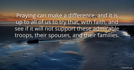 Enzi, Michael. "Praying can make a difference, and it is up to all of us to try that, with faith, and see if it will not support these admirable troops, their spouses, and their families." FixQuotes. January 16, 2026. https://fixquotes.com/quotes/praying-can-make-a-difference-and-it-is-up-to-all-132626/.