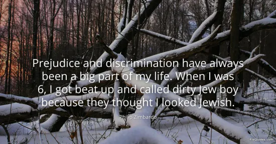 Zimbardo, Philip. (2026, January 16). Prejudice and discrimination have always been a big part of my life. When I was 6, I got beat up and called dirty Jew boy because they thought I looked Jewish. FixQuotes. https://fixquotes.com/quotes/prejudice-and-discrimination-have-always-been-a-94645/