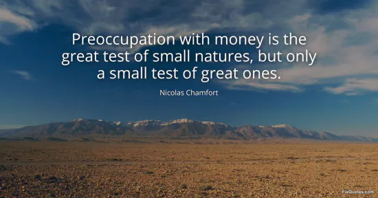 Chamfort, Nicolas. "Preoccupation with money is the great test of small natures, but only a small test of great ones." FixQuotes. January 18, 2026. https://fixquotes.com/quotes/preoccupation-with-money-is-the-great-test-of-16187/.
