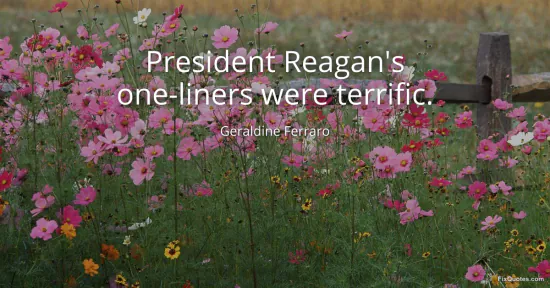 Ferraro, Geraldine. "President Reagan's one-liners were terrific." FixQuotes. January 15, 2026. https://fixquotes.com/quotes/president-reagans-one-liners-were-terrific-154460/.