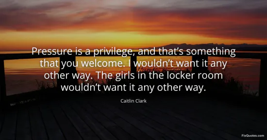 Clark, Caitlin. "Pressure is a privilege, and that’s something that you welcome. I wouldn’t want it any other way. The girls in the locker room wouldn’t want it any other way." FixQuotes. March 19, 2026. https://fixquotes.com/quotes/pressure-is-a-privilege-and-thats-something-that-186157/.