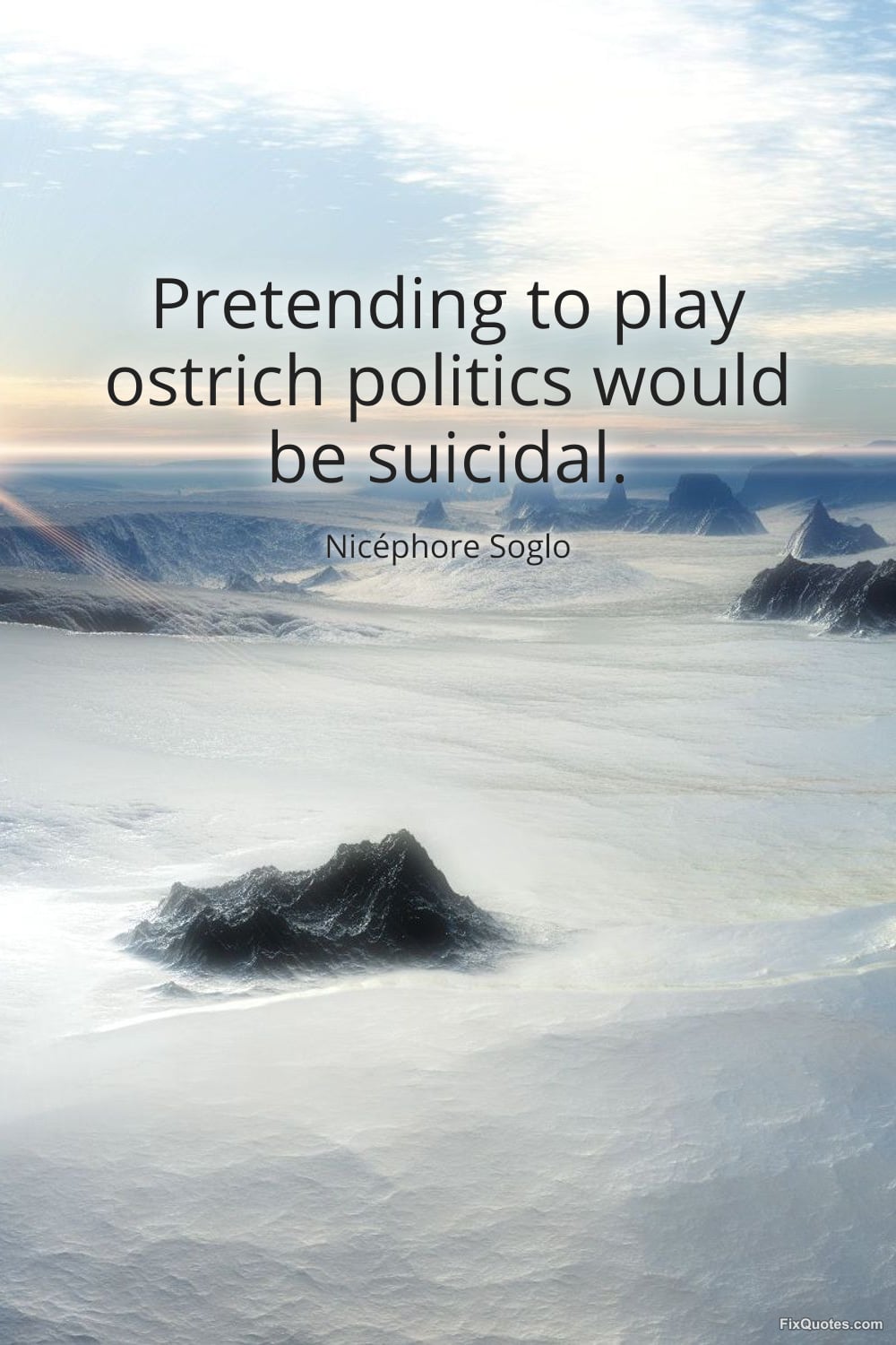Soglo, Nicéphore. "Pretending to play ostrich politics would be suicidal." FixQuotes. March 9, 2026. https://fixquotes.com/quotes/pretending-to-play-ostrich-politics-would-be-185784/.