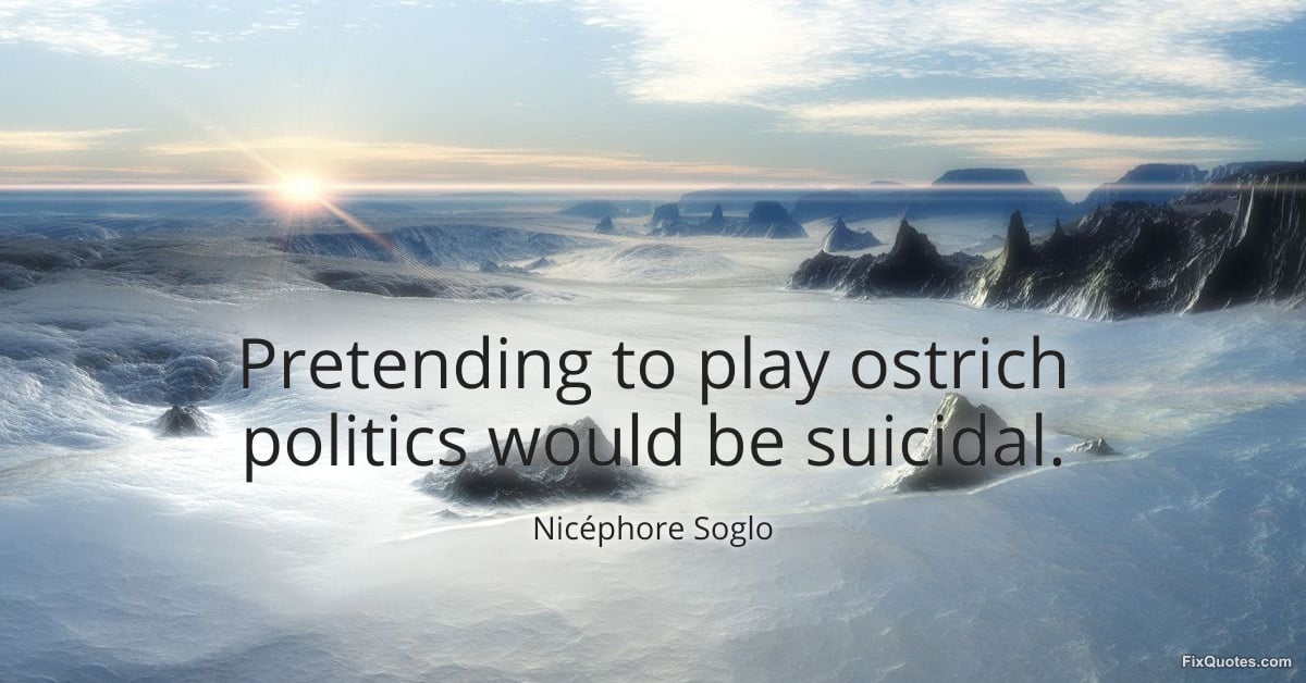 Soglo, Nicéphore. (2026, March 9). Pretending to play ostrich politics would be suicidal. FixQuotes. https://fixquotes.com/quotes/pretending-to-play-ostrich-politics-would-be-185784/