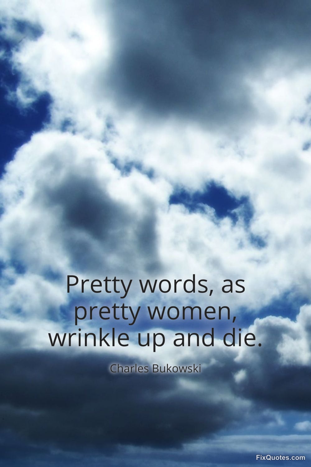 Bukowski, Charles. (2026, February 10). Pretty words, as pretty women, wrinkle up and die. FixQuotes. https://fixquotes.com/quotes/pretty-words-as-pretty-women-wrinkle-up-and-die-185260/