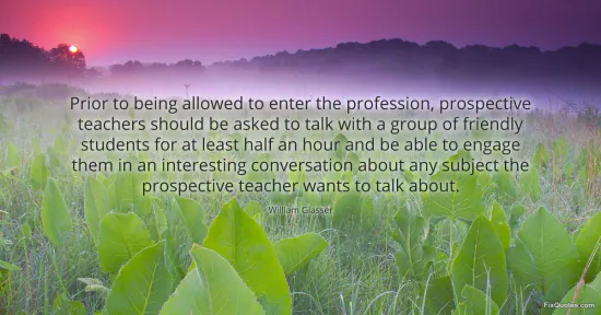 "Prior to being allowed to enter the profession, prospective teachers should be asked to talk with a group of friendly students for at least half an hour and be able to engage them in an interesting conversation about any subject the prospective teacher wants to talk about"