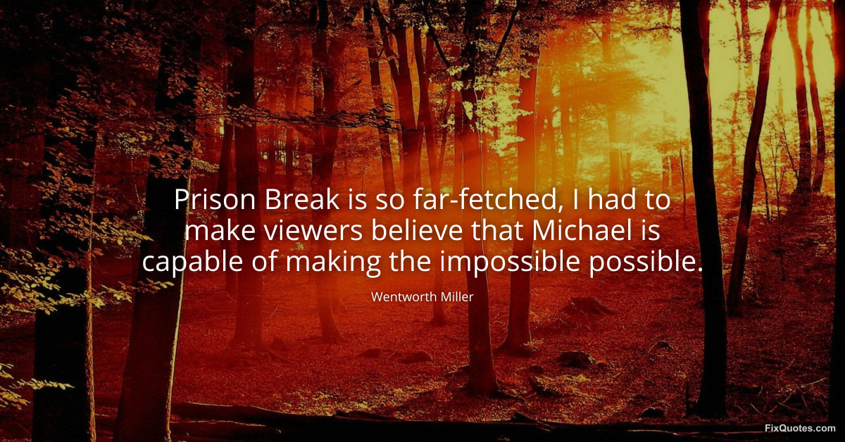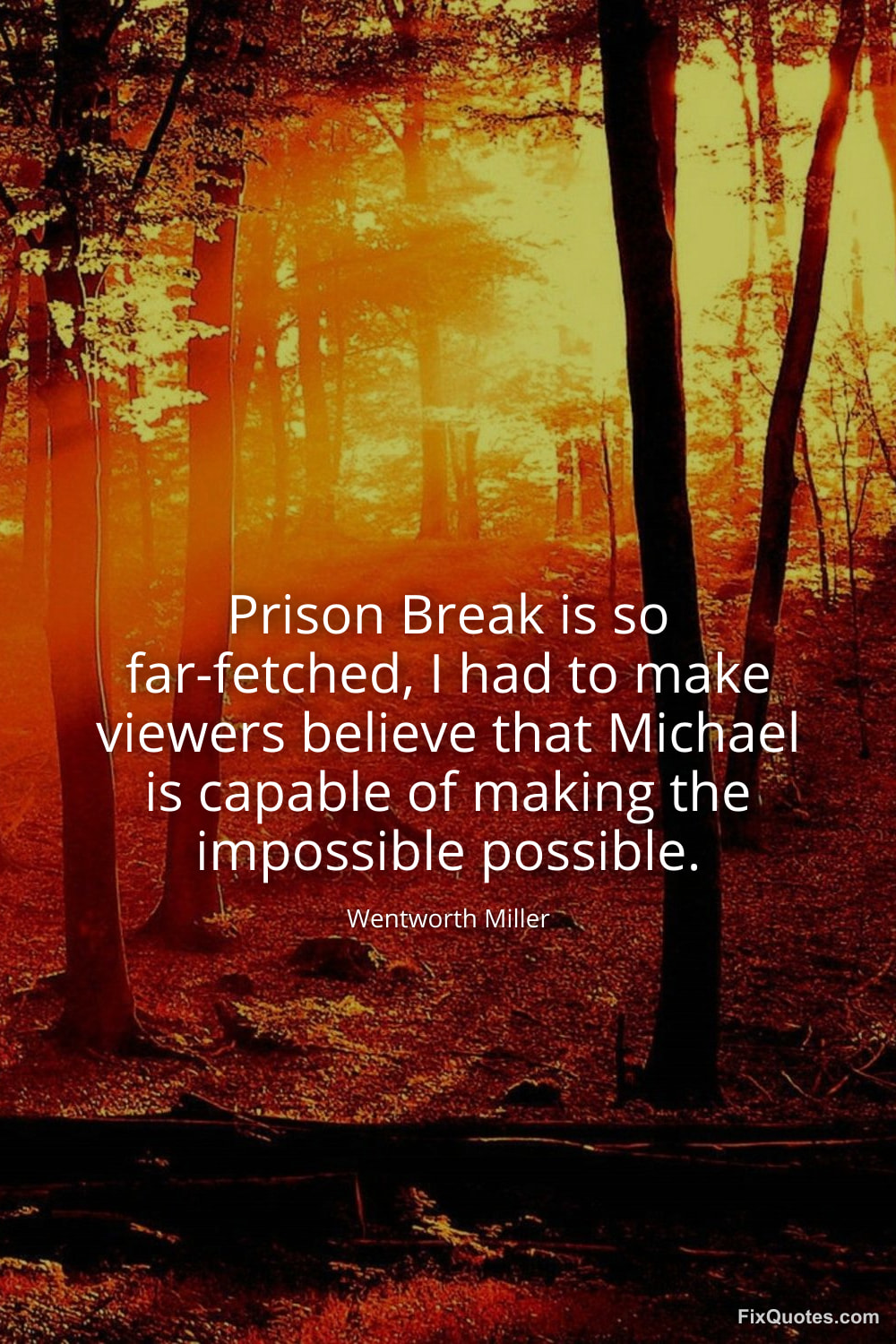 Miller, Wentworth. "Prison Break is so far-fetched, I had to make viewers believe that Michael is capable of making the impossible possible." FixQuotes. January 15, 2026. https://fixquotes.com/quotes/prison-break-is-so-far-fetched-i-had-to-make-17522/.
