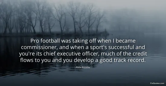 Rozelle, Pete. "Pro football was taking off when I became commissioner, and when a sport's successful and you're its chief executive officer, much of the credit flows to you and you develop a good track record." FixQuotes. January 15, 2026. https://fixquotes.com/quotes/pro-football-was-taking-off-when-i-became-151159/.