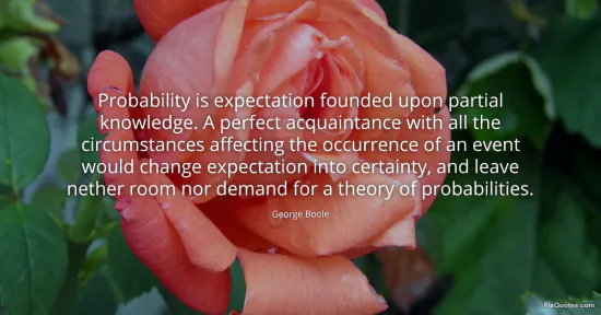 Boole gives probability the faintly embarrassing status of a coping mechanism: not a law of nature, but a disciplined way of making peace with what we don t know. Calling it "expectation founded upon partial knowledge" strips away any mystique. Probability is not fate, not vibes, not even truth; it is rational guesswork under constraints. The line is surgical because it reframes the whole enterprise as epistemology, not just arithmetic.