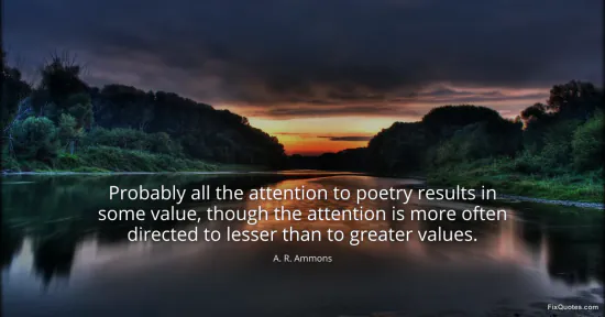 Ammons, A. R. "Probably all the attention to poetry results in some value, though the attention is more often directed to lesser than to greater values." FixQuotes. January 17, 2026. https://fixquotes.com/quotes/probably-all-the-attention-to-poetry-results-in-40124/.