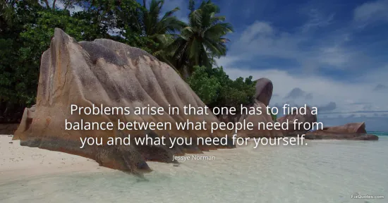 Norman, Jessye. "Problems arise in that one has to find a balance between what people need from you and what you need for yourself." FixQuotes. January 15, 2026. https://fixquotes.com/quotes/problems-arise-in-that-one-has-to-find-a-balance-169835/.