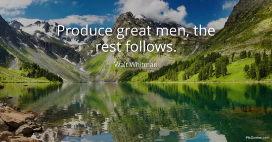 Whitman, Walt. (2026, January 17). Produce great men, the rest follows. FixQuotes. https://fixquotes.com/quotes/produce-great-men-the-rest-follows-28996/