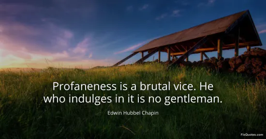 Chapin, Edwin Hubbel. "Profaneness is a brutal vice. He who indulges in it is no gentleman." FixQuotes. January 17, 2026. https://fixquotes.com/quotes/profaneness-is-a-brutal-vice-he-who-indulges-in-50708/.