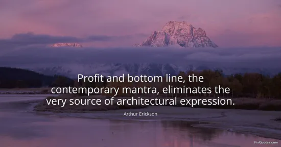 Erickson, Arthur. (2026, January 16). Profit and bottom line, the contemporary mantra, eliminates the very source of architectural expression. FixQuotes. https://fixquotes.com/quotes/profit-and-bottom-line-the-contemporary-mantra-117543/