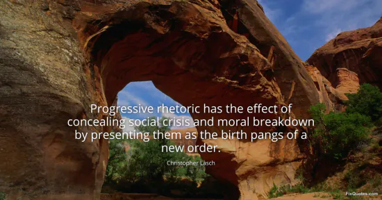 Lasch, Christopher. (2026, January 17). Progressive rhetoric has the effect of concealing social crisis and moral breakdown by presenting them as the birth pangs of a new order. FixQuotes. https://fixquotes.com/quotes/progressive-rhetoric-has-the-effect-of-concealing-47579/