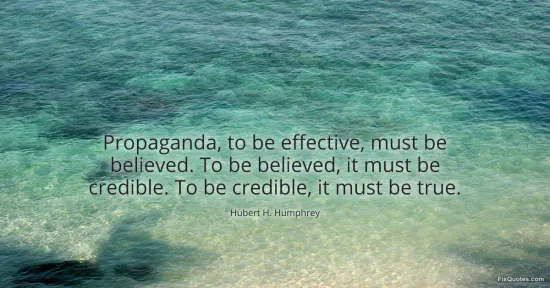 Humphrey, Hubert H. (2026, January 17). Propaganda, to be effective, must be believed. To be believed, it must be credible. To be credible, it must be true. FixQuotes. https://fixquotes.com/quotes/propaganda-to-be-effective-must-be-believed-to-be-60697/