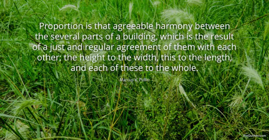 Pollio, Marcus V. (2026, January 15). Proportion is that agreeable harmony between the several parts of a building, which is the result of a just and regular agreement of them with each other; the height to the width, this to the length, and each of these to the whole. FixQuotes. https://fixquotes.com/quotes/proportion-is-that-agreeable-harmony-between-the-161349/