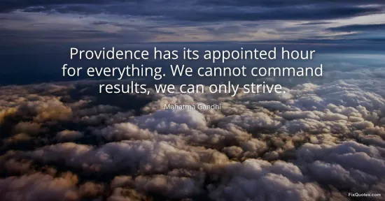 Gandhi, Mahatma. (2026, January 17). Providence has its appointed hour for everything. We cannot command results, we can only strive. FixQuotes. https://fixquotes.com/quotes/providence-has-its-appointed-hour-for-everything-36025/