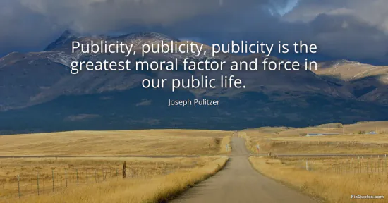 Pulitzer, Joseph. (2026, January 15). Publicity, publicity, publicity is the greatest moral factor and force in our public life. FixQuotes. https://fixquotes.com/quotes/publicity-publicity-publicity-is-the-greatest-8989/