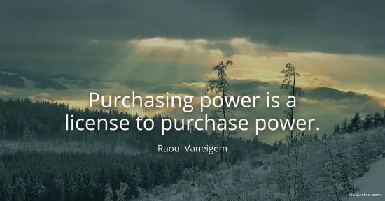 Vaneigem, Raoul. (2026, January 15). Purchasing power is a license to purchase power. FixQuotes. https://fixquotes.com/quotes/purchasing-power-is-a-license-to-purchase-power-168330/