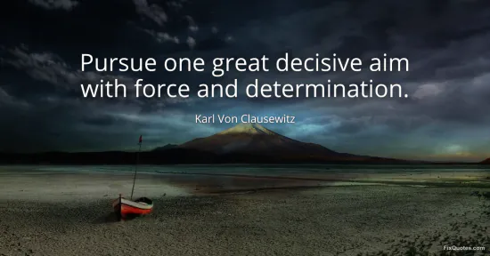 Clausewitz, Karl Von. "Pursue one great decisive aim with force and determination." FixQuotes. January 17, 2026. https://fixquotes.com/quotes/pursue-one-great-decisive-aim-with-force-and-32295/.