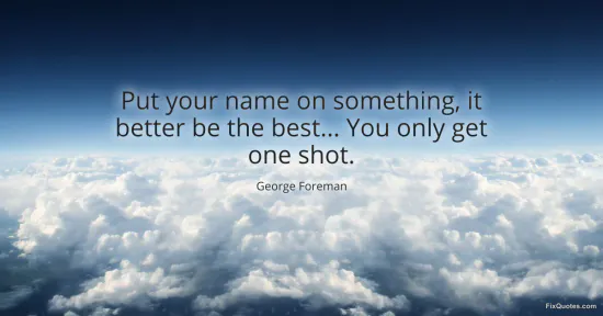 Foreman, George. (2026, February 16). Put your name on something, it better be the best... You only get one shot. FixQuotes. https://fixquotes.com/quotes/put-your-name-on-something-it-better-be-the-best-55333/