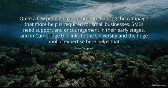 Campbell, Anne. (2026, January 16). Quite a few people have commented during the campaign that more help is required for small businesses. SMEs need support and encouragement in their early stages, and in Cambridge the links to the University and the huge pool of expertise here helps that. FixQuotes. https://fixquotes.com/quotes/quite-a-few-people-have-commented-during-the-138018/