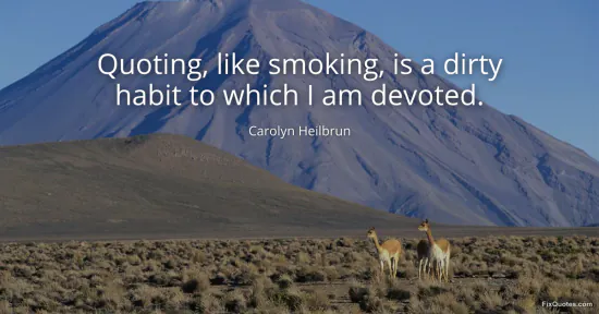 Heilbrun, Carolyn. "Quoting, like smoking, is a dirty habit to which I am devoted." FixQuotes. January 15, 2026. https://fixquotes.com/quotes/quoting-like-smoking-is-a-dirty-habit-to-which-i-162742/.