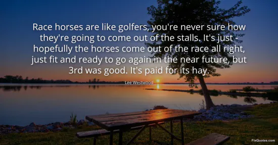 Westwood, Lee. "Race horses are like golfers, you're never sure how they're going to come out of the stalls. It's just - hopefully the horses come out of the race all right, just fit and ready to go again in the near future, but 3rd was good. It's paid for its hay." FixQuotes. January 15, 2026. https://fixquotes.com/quotes/race-horses-are-like-golfers-youre-never-sure-how-103645/.
