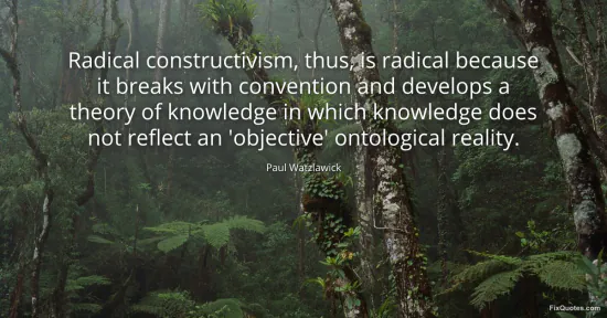 Watzlawick, Paul. "Radical constructivism, thus, is radical because it breaks with convention and develops a theory of knowledge in which knowledge does not reflect an 'objective' ontological reality." FixQuotes. January 18, 2026. https://fixquotes.com/quotes/radical-constructivism-thus-is-radical-because-it-21205/.