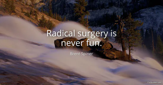 “Radical surgery is never fun” lands with the dry efficiency of a one-liner that’s doing two jobs at once: it acknowledges real bodily stakes while puncturing our culture’s reflex to sugarcoat pain. Spiner, best known for playing the hyper-rational android Data, has built a career around controlled delivery and tonal understatement. That background matters here. The line reads like someone forcing themselves into calm by stating the obvious, the way you do when fear is too loud and you need language to box it in.