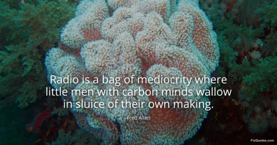Allen, Fred. (2026, January 15). Radio is a bag of mediocrity where little men with carbon minds wallow in sluice of their own making. FixQuotes. https://fixquotes.com/quotes/radio-is-a-bag-of-mediocrity-where-little-men-156593/